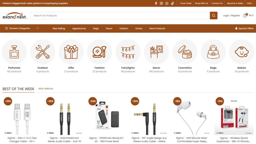 AR Dropshipping is one of Pakistan’s largest and most established dropshipping networks, boasting a catalog of over 10,000 SKUs. It spans fashion, electronics, beauty, and home essentials, offering substantial variety for sellers targeting multiple customer segments.