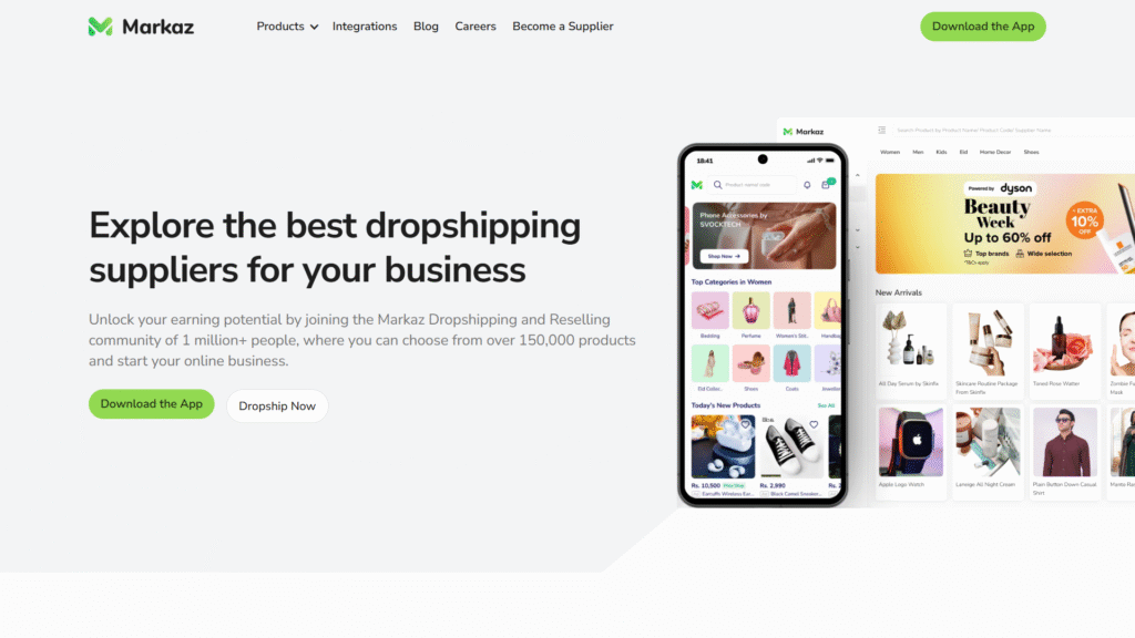 Markaz is a mobile-first platform designed for social commerce. It offers around 3,000 curated products, handpicked for high demand and quick sales, with a focus on trending items such as small electronics, beauty tools, and lifestyle accessories.